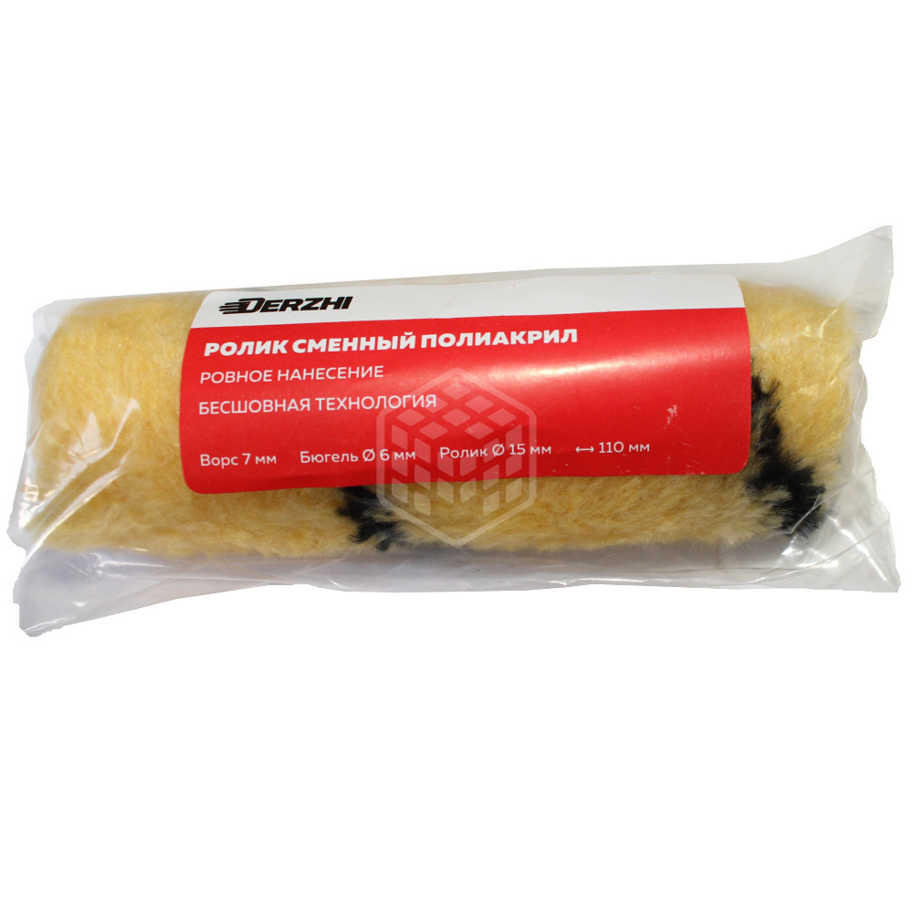 Характеристики товара Ролик сменный Derzhi, полиакрил, ворс 7 мм, 15х110 мм, 04-61511