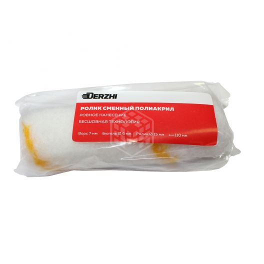 Характеристики товара Ролик сменный Derzhi, полиакрил, ворс 7 мм, 15х110 мм, 02-61511
