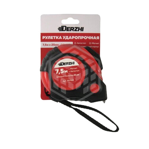 Рулетка Derzhi ROUND, 7,5 м, 25 мм, автостоп, 207525