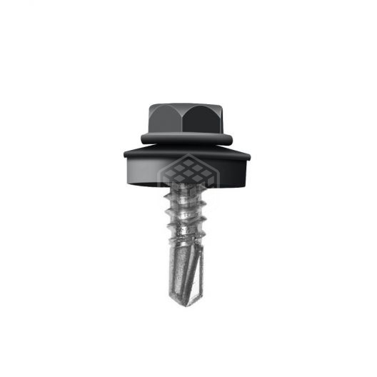 Саморез 4,2х16 мм, с прессшайбой, сверло, RAL 9005 черный, 1000 шт