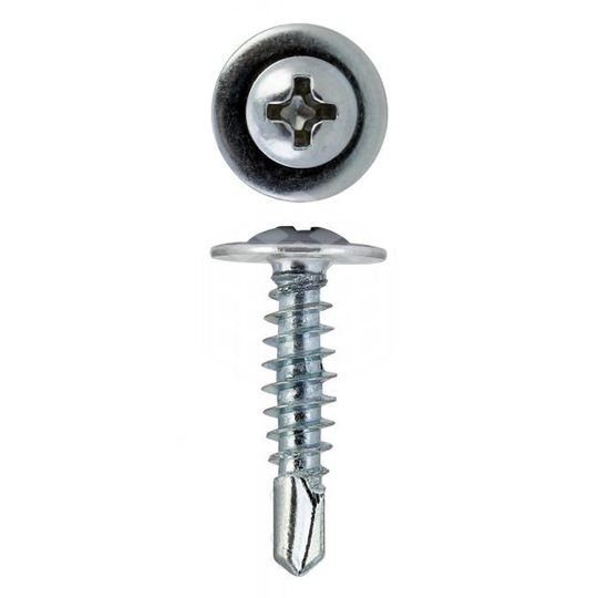 - это универсальный крепежный элемент для соединения металлических листов и профилей между собой или с другими материалами. Саморез диаметром 4,2 мм и длиной 57 мм оснащен наконечником-сверлом для вкручивания без предварительного сверления и широкой прессшайбой для надежной фиксации материала. Поставляется в упаковке из 250 штук, имеет антикоррозионное белое цинковое покрытие и используется в строительстве, кровельных работах и монтаже вентиляционных систем. -