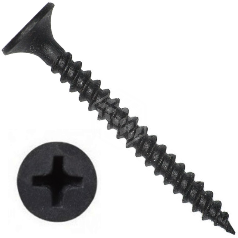 Саморез частый шаг, 3,5х51 мм, чёрный фосфат используется, как правило, для крепления листов гипсокартона к металлическому основанию (толщиной до 1 мм). Конструкция представляет собой стержень с частой резьбой, на котором размещена потайная головка. Головка самореза имеет крестообразный шлиц, что позволяет проводить монтаж не только с использованием дрелей-шуруповёртов с соответствующей битой, но и при помощи обычной отвёртки. Обычно саморез вкручивают с предварительным сверлением. Крепёж изготовлен из углеродистой стали с фосфатированным покрытием (чёрная глазурь), защищающим от возникновения коррозии.