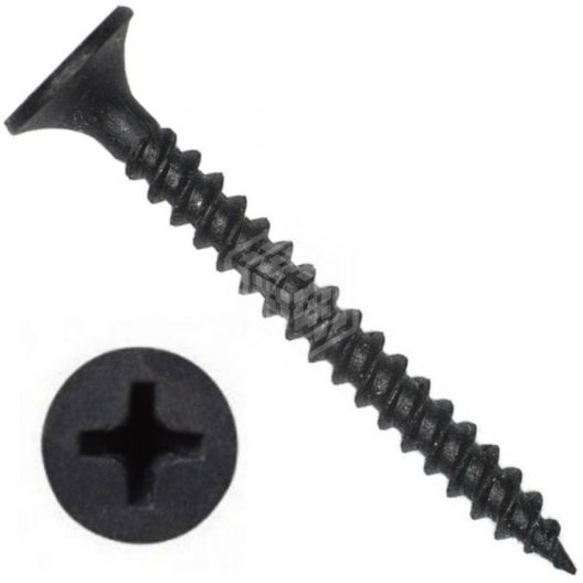 Саморез частый шаг, 3,5х55 мм, чёрный фосфат, 300 шт, ат предназначен для выполнения качественного крепления листов гипсокартона к металлическому основанию (толщиной до 1 мм). По своей конструкции изделие представляет собой стержень с частой резьбой, на котором размещена потайная головка. Головка самореза, в свою очередь, имеет крестообразный шлиц, что позволяет проводить монтаж не только с использованием дрелей-шуруповёртов с соответствующей битой, но и при помощи обычной отвёртки.