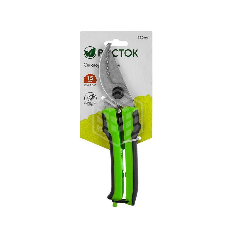 Характеристики товара Секатор Росток, 220 мм, двухкомпонентные рукоятки