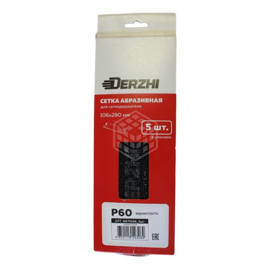 Характеристики товара Сетка абразивная Derzhi, 106х280 мм, Р60, 5 шт