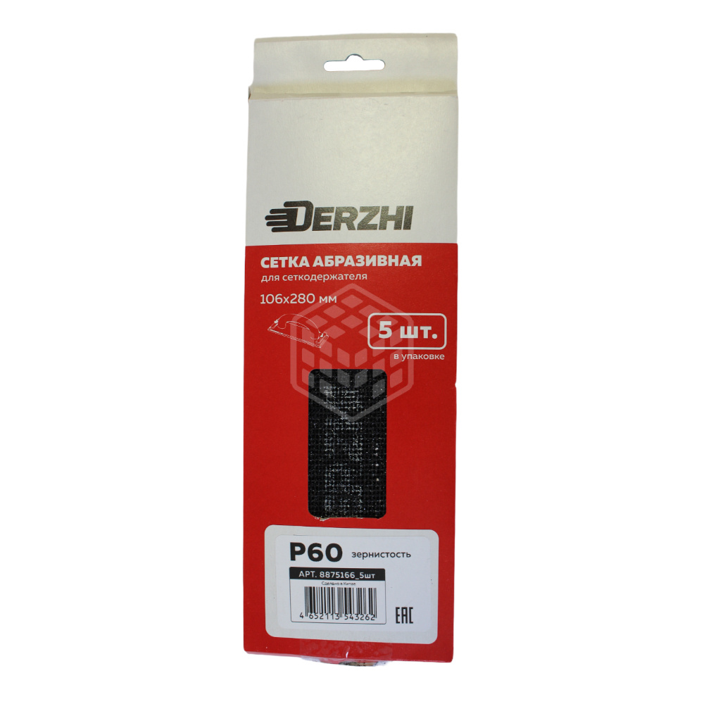 Сетка абразивная Derzhi, 106х280 мм, Р60, 5 шт