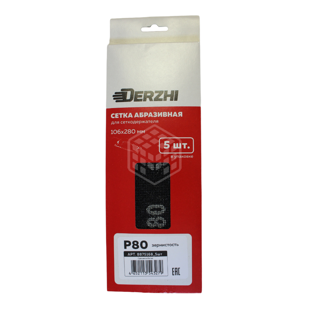 Сетка абразивная Derzhi, 106х280 мм, Р80, 5 шт