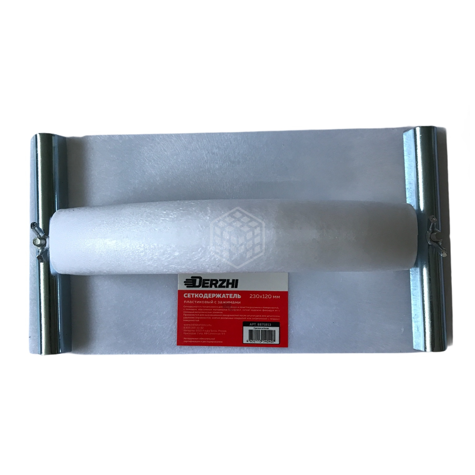 Сеткодержатель Derzhi, 230х120 мм, с зажимами предназначен для использования в целях осуществления шлифования различных поверхностей. Имеет специальные металлические фиксаторы для зажима шлифовальной бумаги и абразивной сетки.