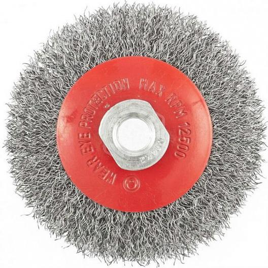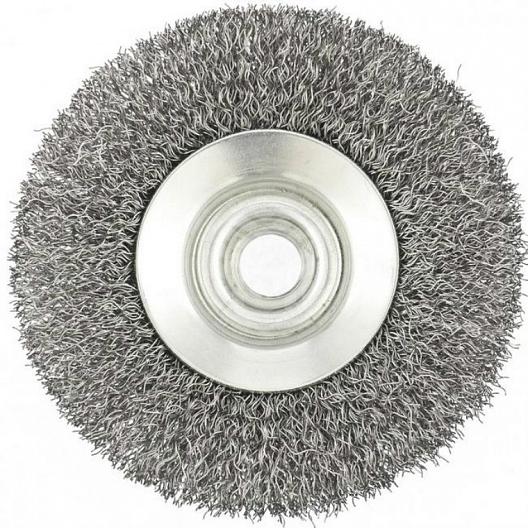 Щётка-тарелка для УШМ Matrix 74608, 100 мм предназначена для применения в качестве оснастки при работе с угловыми шлифмашинами. Щётка используется для зачистки различных металлических поверхностей от грязи, налёта, ржавчины, старой краски и других покрытий. Вместе с тем щётка подходит для зачистки сварных швов от продуктов сварки. Витая стальная проволока обеспечивает отличный результат зачистных работ и имеет высокой эксплуатационный ресурс.