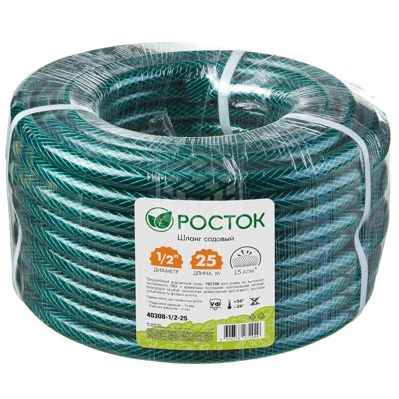 Характеристики товара Шланг поливочный Росток, армированный, 3-х слойный, 1/2", 25 м