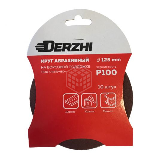Характеристики товара Шлифкруг Derzhi, Р100, без перфорации, под липучку, 125 мм, 10 шт