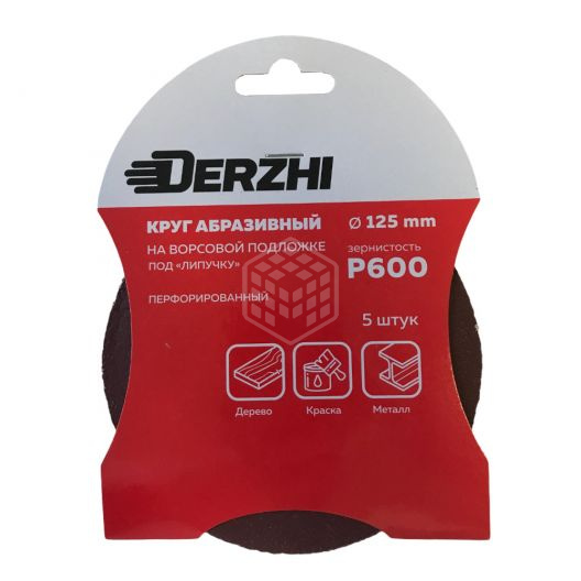 Характеристики товара Шлифкруг Derzhi, Р600, без перфорации, под липучку, 125 мм, 10 шт
