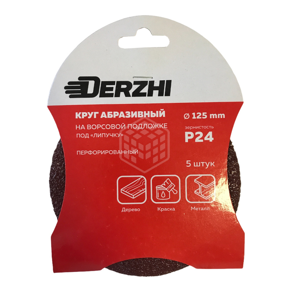 Характеристики товара Шлифкруг Derzhi, Р24, перфорированный, под липучку, 125 мм, 5 шт
