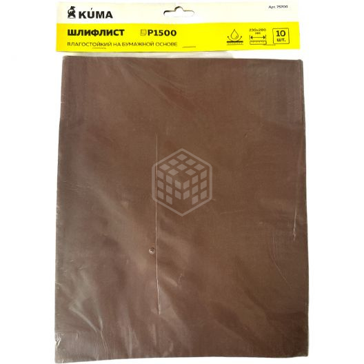 Шлифлист KUMA, 230х280 мм, на бумажной основе, влагостойкий, P1500, 10 шт, 75700 используется в шлифовальных работах.