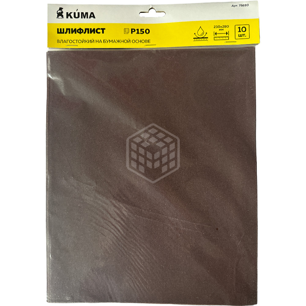 Шлифлист KUMA, 230х280 мм, на бумажной основе, влагостойкий, P150, 10 шт, 75693 используется в шлифовальных работах.