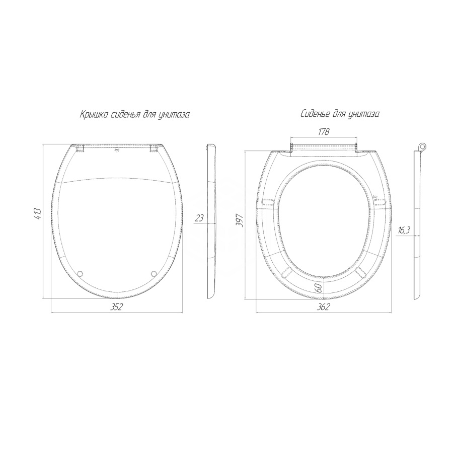Сиденье для унитаза АНИ WS0100, из полипропилена, с креплением для унитаза, 397х362х163 мм из полипропилена с пластиковым креплением для унитаза. Расстояние между осями креплений к унитазу 155 мм или 165 мм (регулируется при установке). Длина крепежного болта к унитазу, а именно той части, которая выходит из крепления, 76 мм. Комплектация: сиденье для унитаза, крепление.