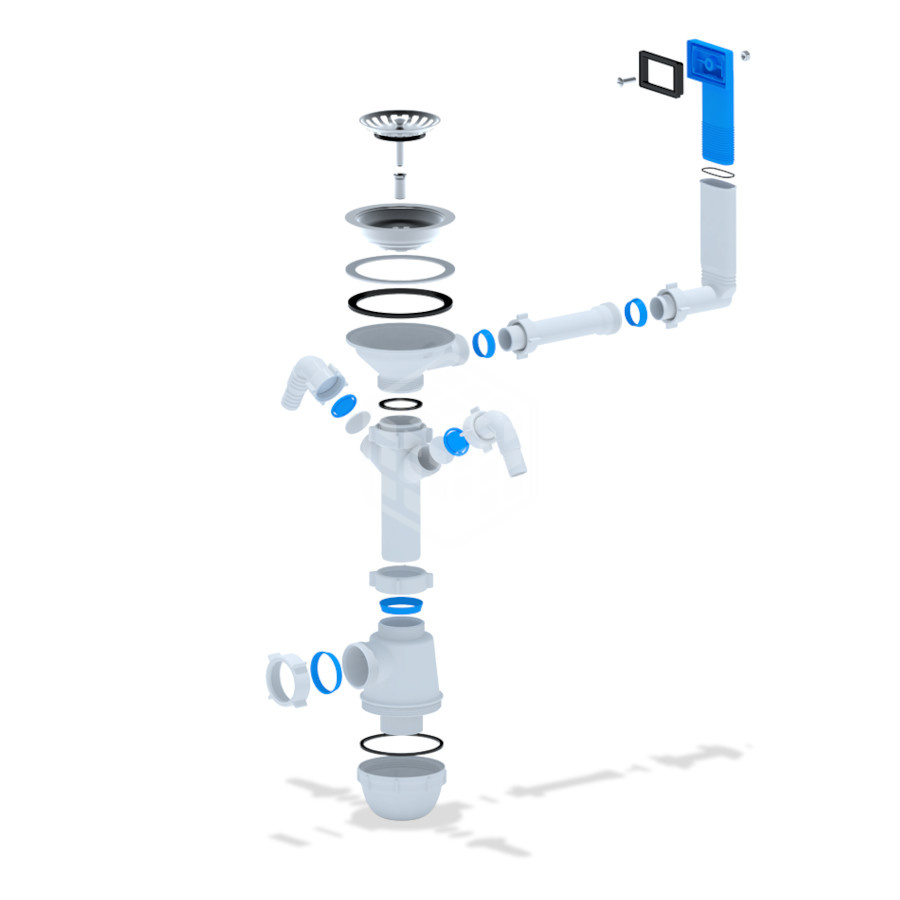 Сифон АНИ, 3 1/2", 40 мм, с двумя отводами для стиральной машины, с жестким переливом, A0146 для кухонных моек с диаметром сливного отверстия 50мм, бутылочного типа с увеличенным корпусом. С разборным выпуском и нержавеющей решеткой диаметром, с жестким прямоугольным переливом для моек из нержавеющей стали. Выпуск перелива оборудован универсальной прокладкой для круглых и прямоугольных моек, нужная сторона прокладки достигается путем переворота. С двумя отводами для подключения бытовой техники. Выход для подключения к канализации 40 мм.
