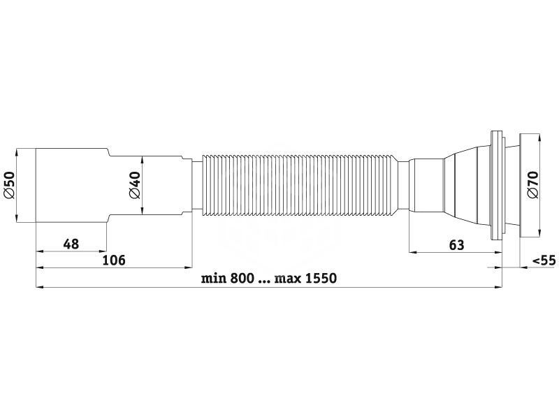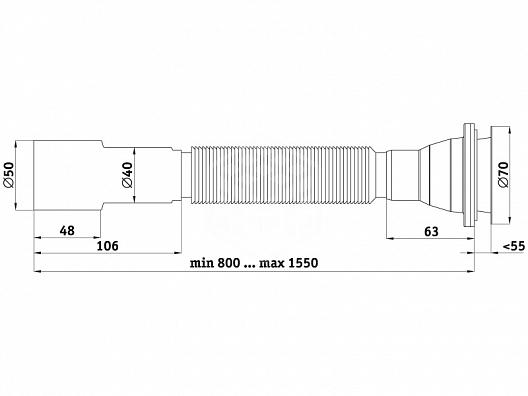 Сифон Ани пласт G716 гофрированный удлиненный 1 1/4"х40/50 мм