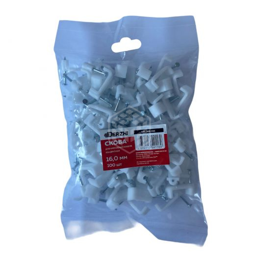 Характеристики товара Скоба для кабеля Derzhi, прямоугольная, 16 мм, 100 шт, 368-016