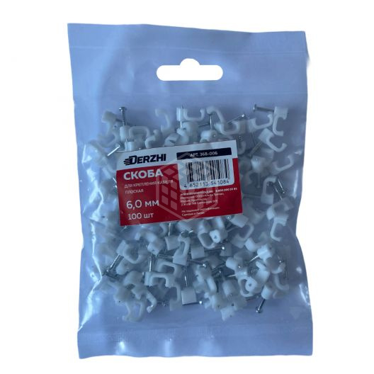 Скоба для кабеля Derzhi, прямоугольная, 6 мм, 100 шт, 368-006