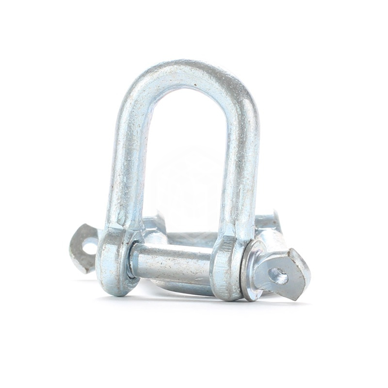 является крепежным элементом, который используется для быстрого соединения и скрепления тросов проволочных, канатов, цепей, и т.п. в статичных и подъемных системах. Крепеж выполнен в виде металлической петли с отверстиями на концах, которые соединяются поперечным элементом - пальцем.