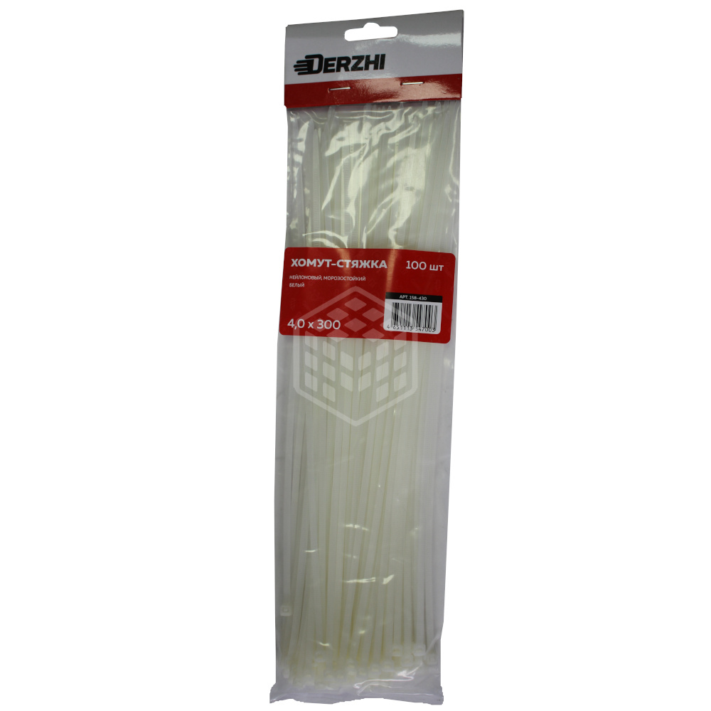 Хомут-стяжка Derzhi КСС, 4х300 мм, нейлоновые, белые, 100 шт