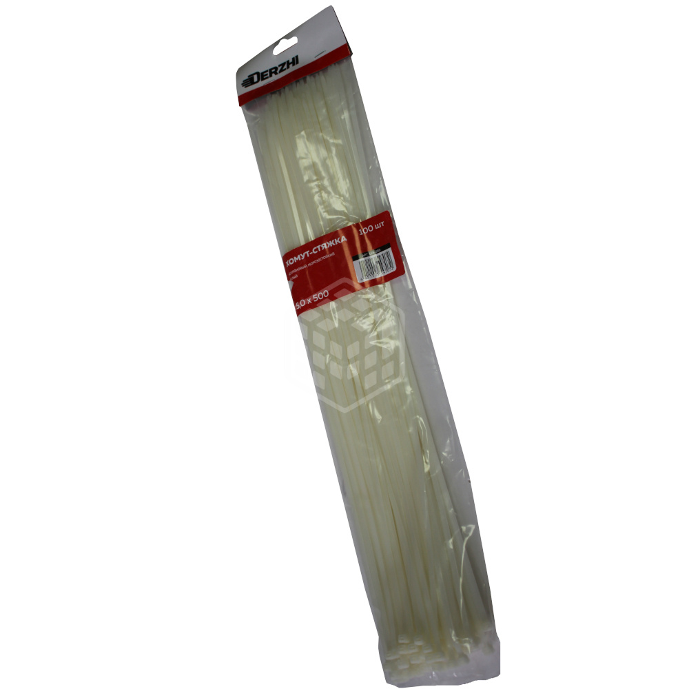 Хомут-стяжка Derzhi КСС, 5х500 мм, нейлоновые, белые, 100 шт
