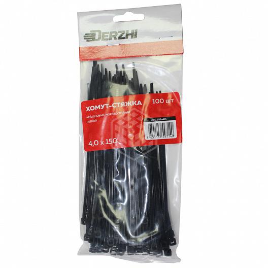 Хомут-стяжка Derzhi КСС, 4х150 мм, нейлоновые, черные, 100 шт