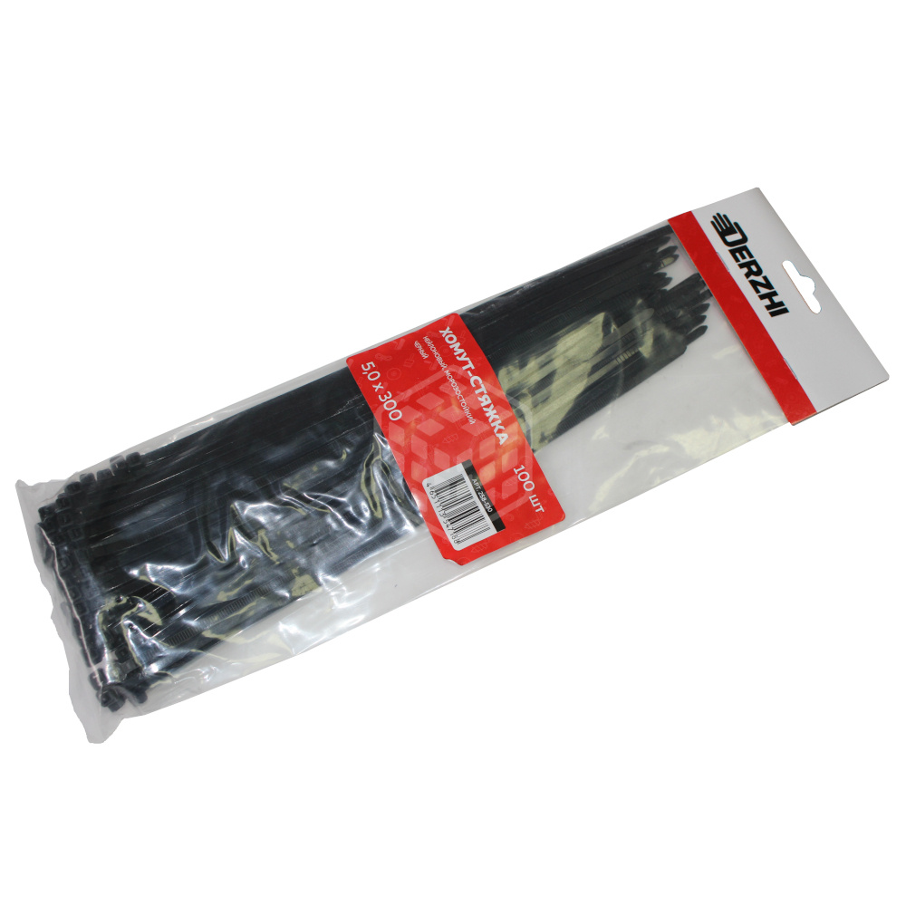 Хомут-стяжка Derzhi КСС, 5х300 мм, нейлоновые, черные, 100 шт