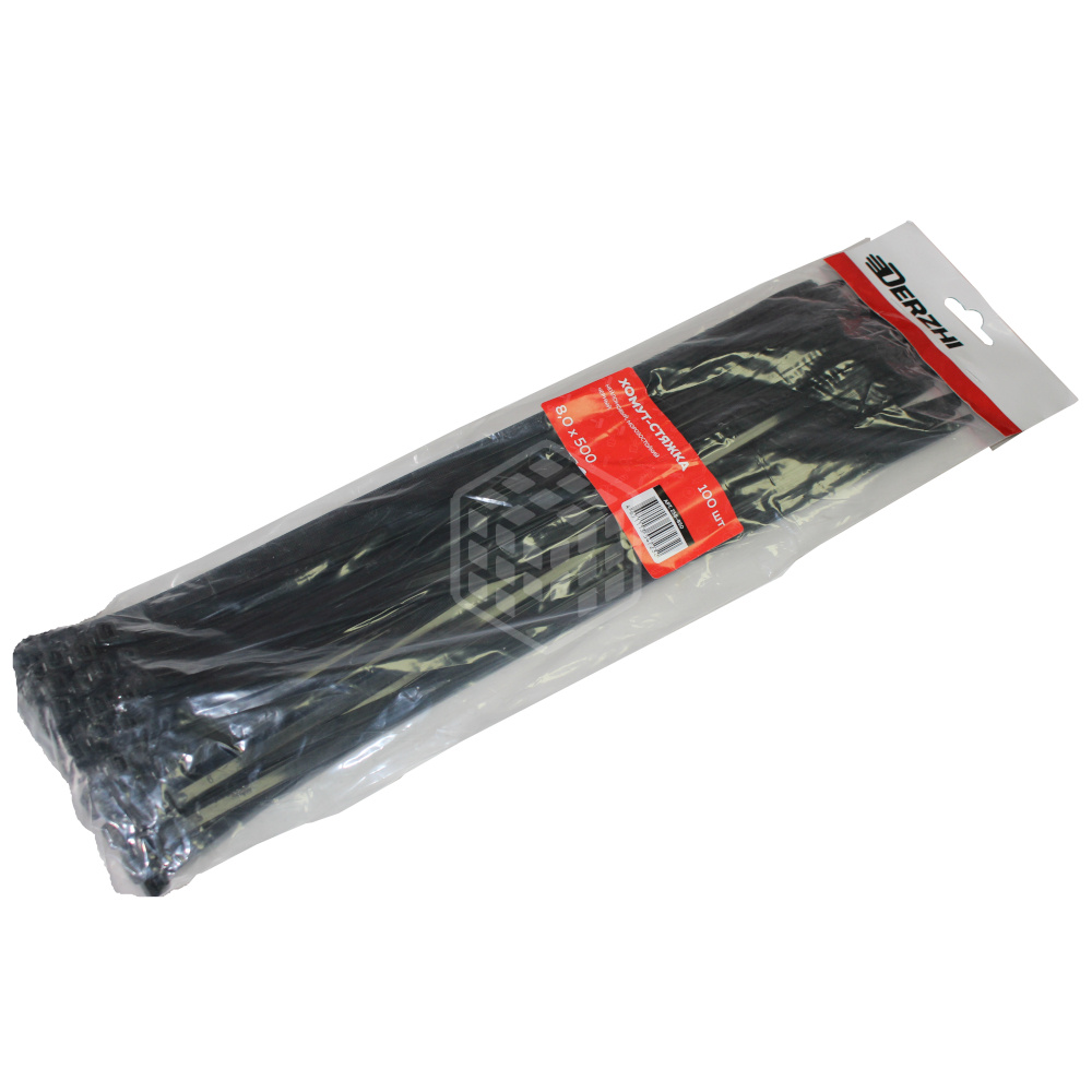 Хомут-стяжка Derzhi КСС, 8х500 мм, нейлоновые, черные, 100 шт