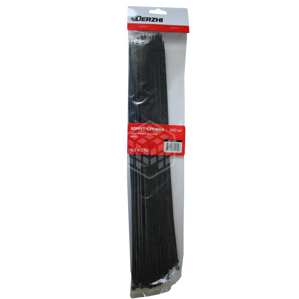 Характеристики товара Хомут-стяжка Derzhi КСС, 4х370 мм, нейлоновые, черные, 100 шт