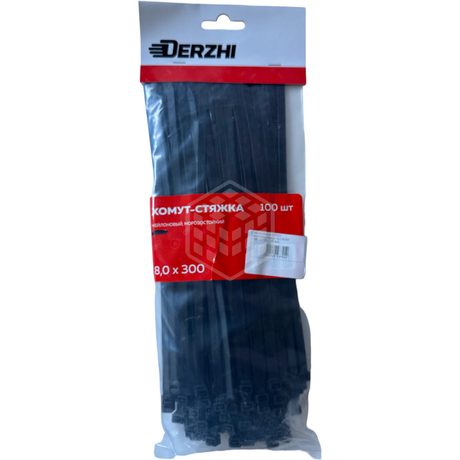 Характеристики товара Стяжки (хомуты) DERZHI, нейлоновые, черные, КСС, 8х300 мм, 100 шт 258-830
