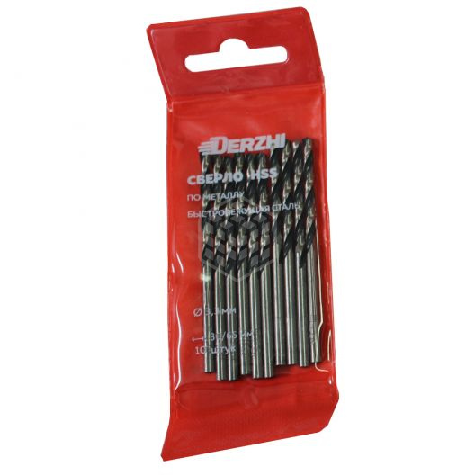Сверло по металлу Derzhi, HSS, 3,3x65 мм, 10 шт