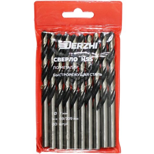 Сверло по металлу Derzhi, HSS, 7x69x109 мм