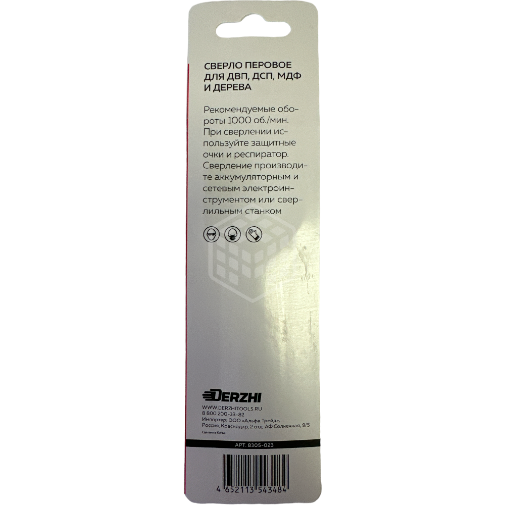 Характеристики товара Сверло перовое по дереву Derzhi, 35х152 мм, 8305-021