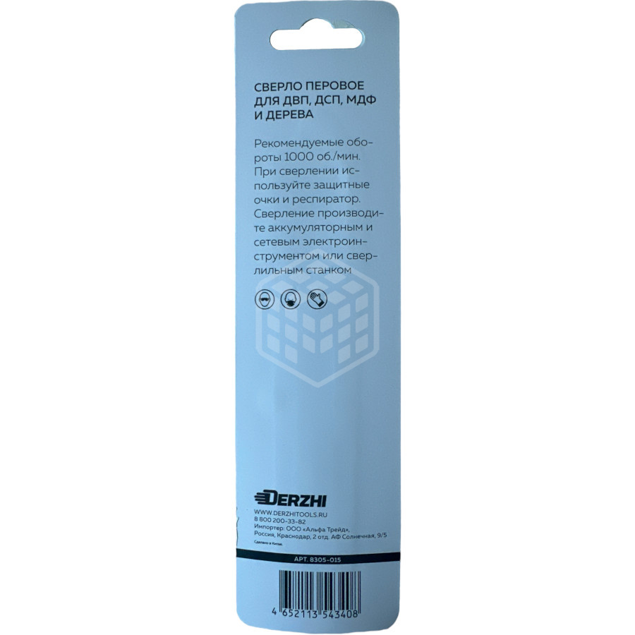 Характеристики товара Сверло DERZHI по дереву, перовое, 6х152 мм, 8305-015