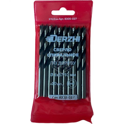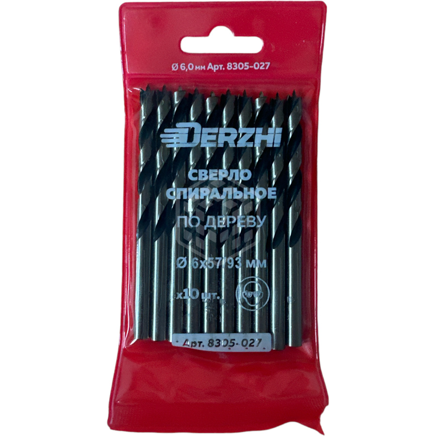 Сверло DERZHI по дереву, спиральное, 6х57/93 мм, 8305-027, 10 шт