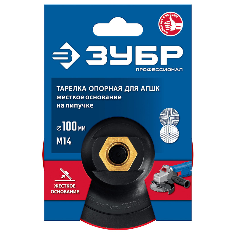 Характеристики товара Тарелка опроная Зубр Профессионал, на липучке, для УШМ под АГШК, М14, 100 мм, 3578-100