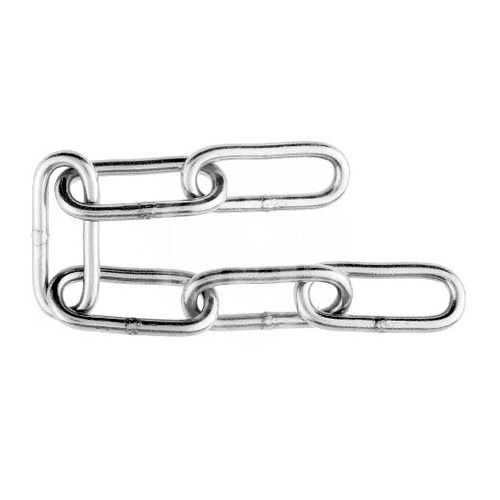 Цепь сварная, длиннозвенная, оцинкованная, 2 мм, 50 м состоит из звеньев овальной формы, соединенных между собой. Изготовлена из углеродистой стали, оцинкована. Цепь имеет большую степень свободы, ограниченную одним звеном. Длиннозвенная цепь хорошо работает в качестве растяжки. Позволяет регулировать длину цепи. За счет большой длины звена легко крепится, при необходимости укорачивается, позволяет сделать петлю методом звено в звено. Не выносит ударных нагрузок.