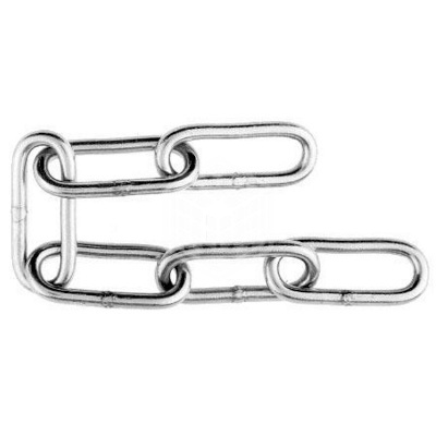 Цепь сварная, длиннозвенная, оцинкованная, 4 мм, 50 м предназначена для подвесок, растяжек и легко может быть отрегулирована по длине за счёт большой длины звена. Вместе с тем сварная цепь широко применяется в различных грузоподъемных устройствах, от ручных талей до подъемных кранов, для подъёма и перемещения деталей и элементов конструкций небольшого веса. Изделие подходит для использования в качестве растяжки. Размер цепи определяется диаметром прутка звена. Цепь выполнена из отдельных сваренных овальных оцинкованных стальных звеньев, скрепленных между собой и имеет один сварной шов. Данную цепь не рекомендуется использовать при наличии ударных нагрузок.