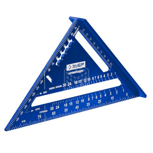 Характеристики товара Угольник ЗУБРуниверсальный кровельный Кровельщик, 180 мм, 5-в-1