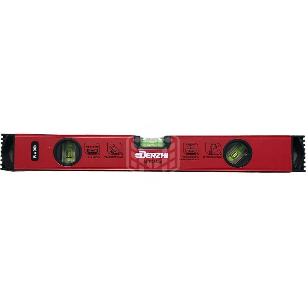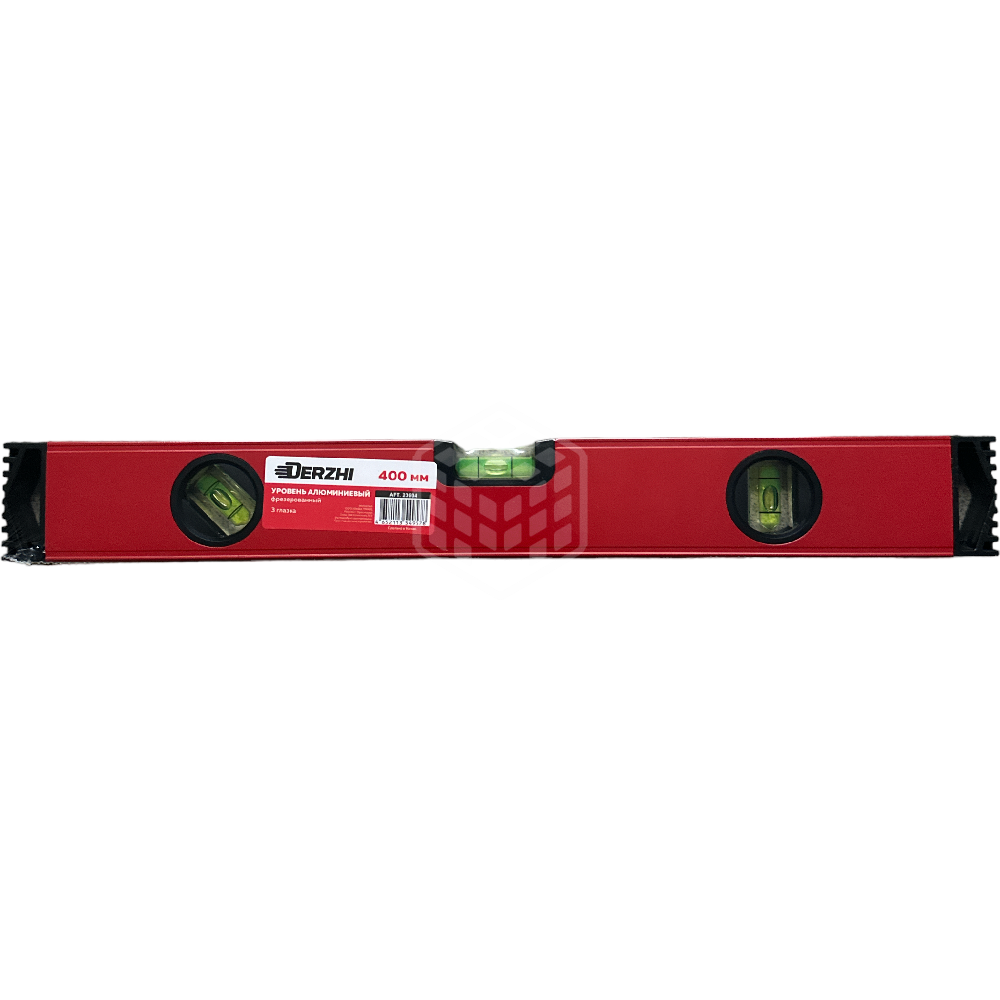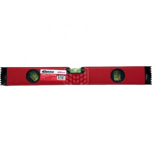 Характеристики товара Строительный уровень Derzhi, 400 мм, алюминиевый, фрезерованный, 3 глазка, 23604