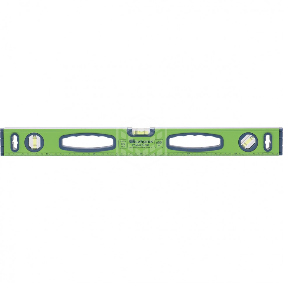 Характеристики товара Уровень СИБРТЕХ алюминиевый фрезерованный, 3 глазка, магнитный, рукоятки, 600 мм, 34114