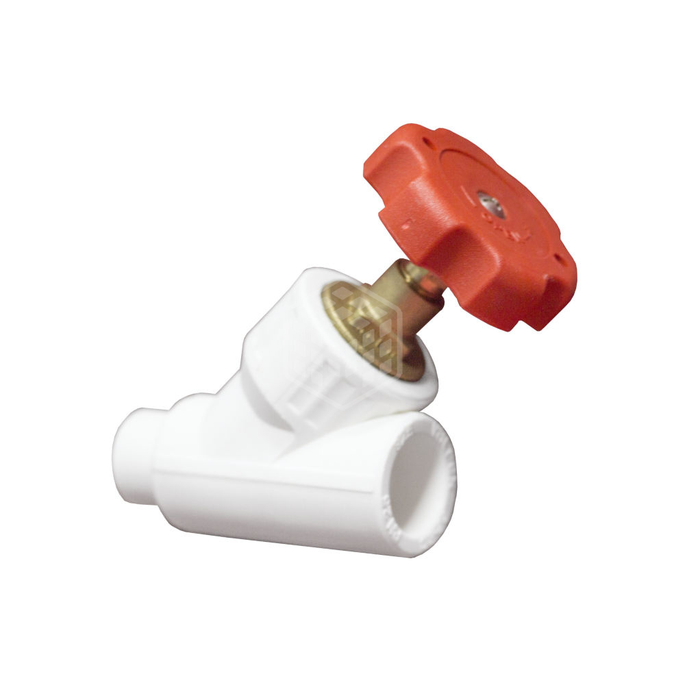 - корпусной фитинг с механизмом регулирования шпиндельного типа расположенного под углом 45 градусов к направлению потока, позволяет плавно регулировать его в системе. Вращение маховика против часовой стрелки открывает вентиль, а по часовой закрывает. Предназначен для использования в составе полипропиленовых трубопроводов систем водоснабжения, отопления пневматических и технологических установок. Монтаж осуществляется методом раструбной сварки. Гарантия 7 лет со дня производства.