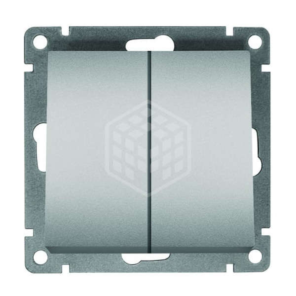 Выключатель 2-клавишный UNIVersal Афина, с/у, 10А, 220В, серебро, без рамки, еврослот, A0023-S