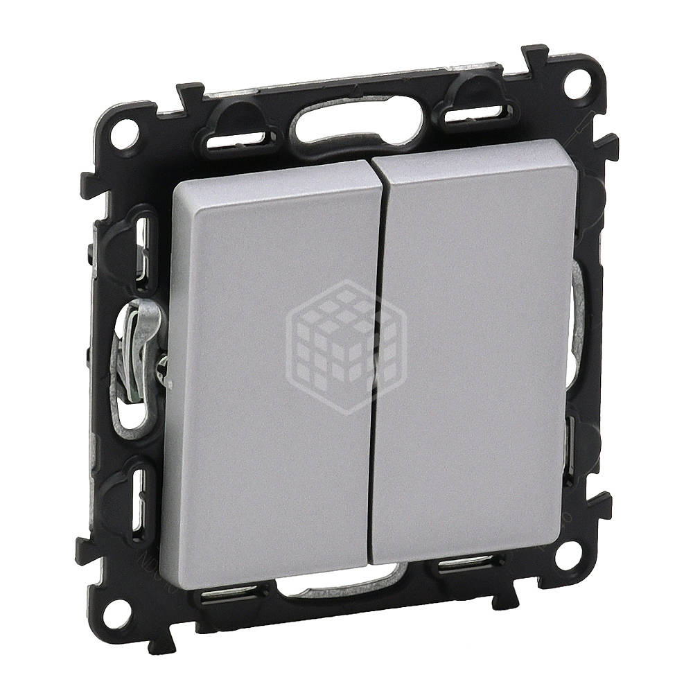 Характеристики товара Выключатель двухклавишный Legrand Valena LIFE, 10 А, 250 В, алюминий, 752605