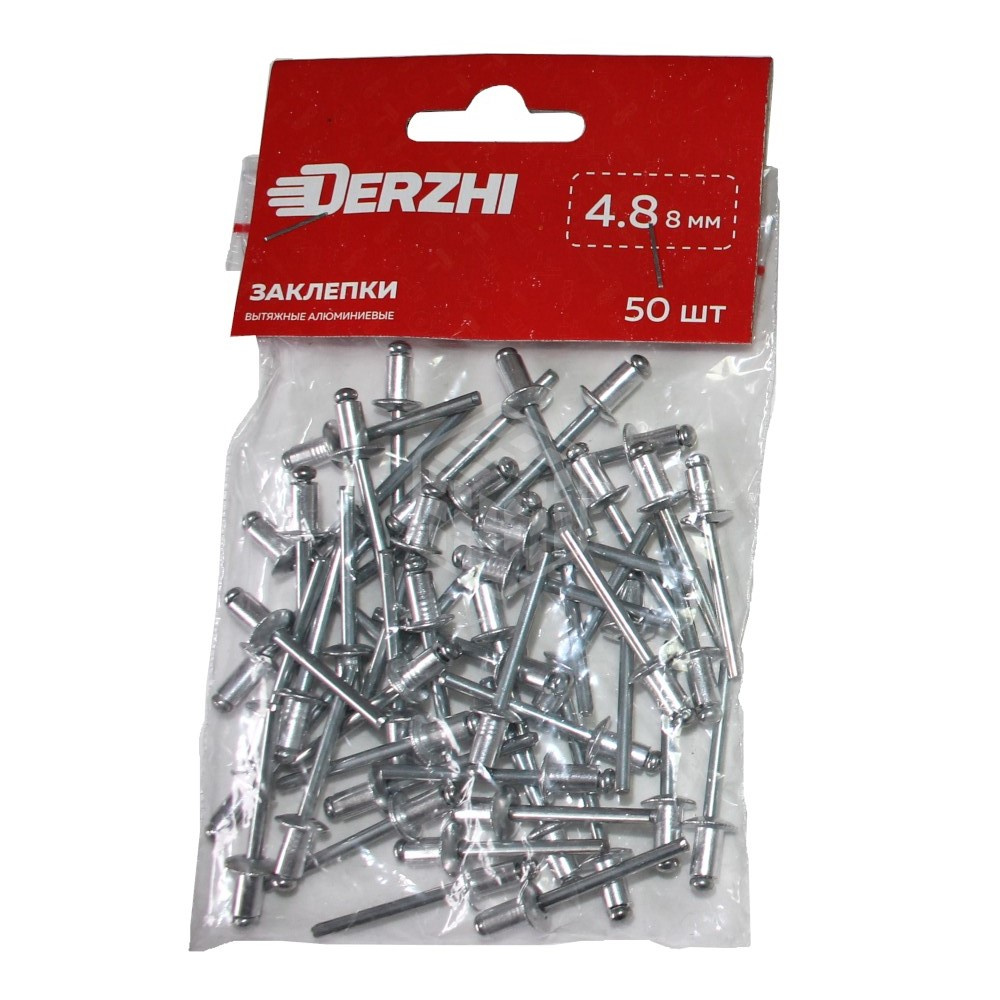 Характеристики товара Заклепки Derzhi алюминиевые, 4,8х8 мм, 50 шт