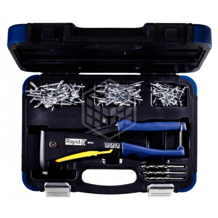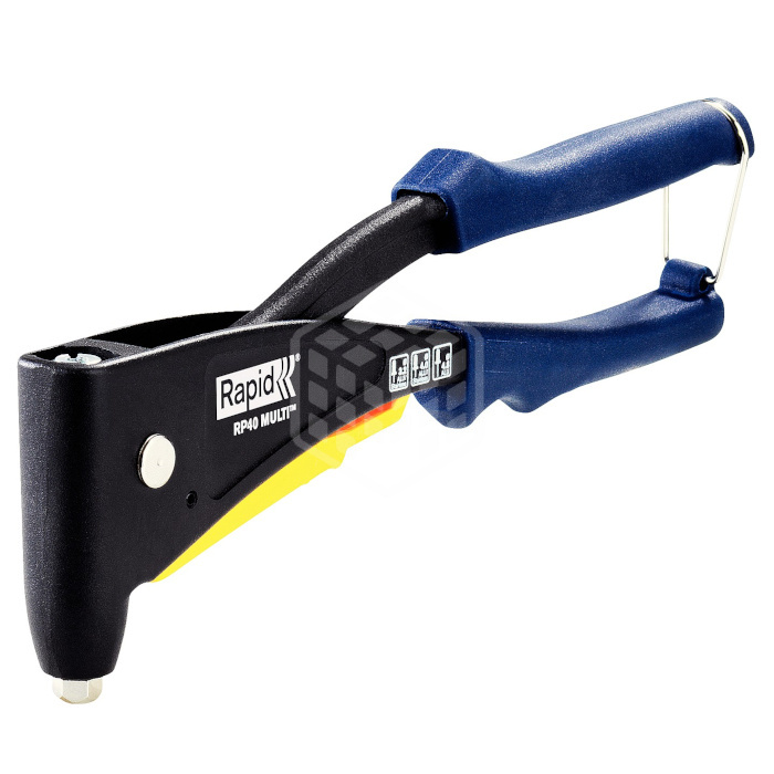 Заклепочник RAPID RP40 MULTI, универсальный, в кейсе, 3,2 мм, 4 мм, 4,8 мм, мультинасадка, 5001127 предназначен для алюминиевых заклепок. Подходит для соединения тонких металлических конструкций. Работает в 2-х позициях: на 90 и 180 градусов.