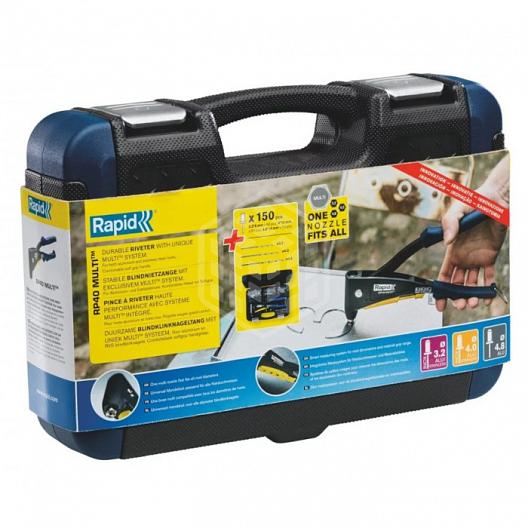 Заклепочник RAPID RP40 MULTI, универсальный, в кейсе, 3,2 мм, 4 мм, 4,8 мм, мультинасадка, 5001127